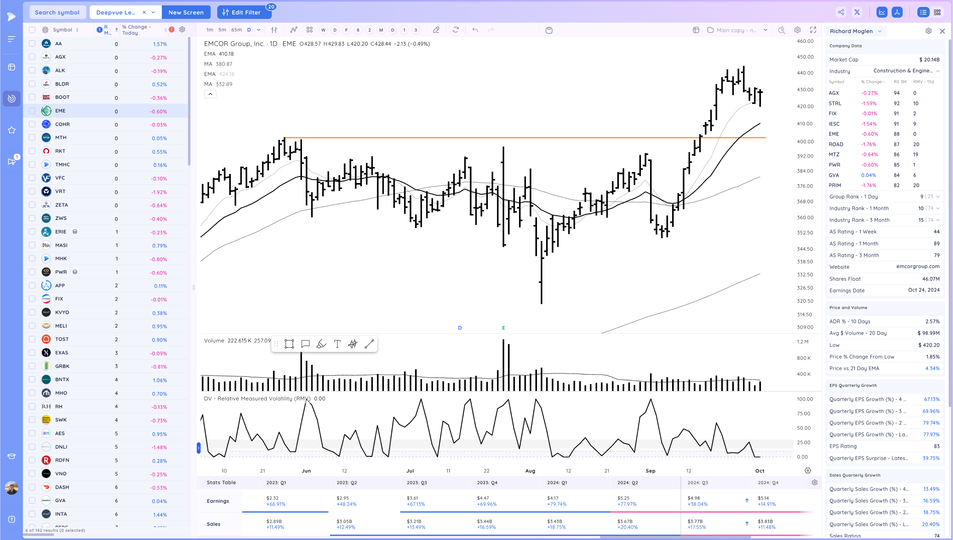 EME 10 ema pullback post base breakout