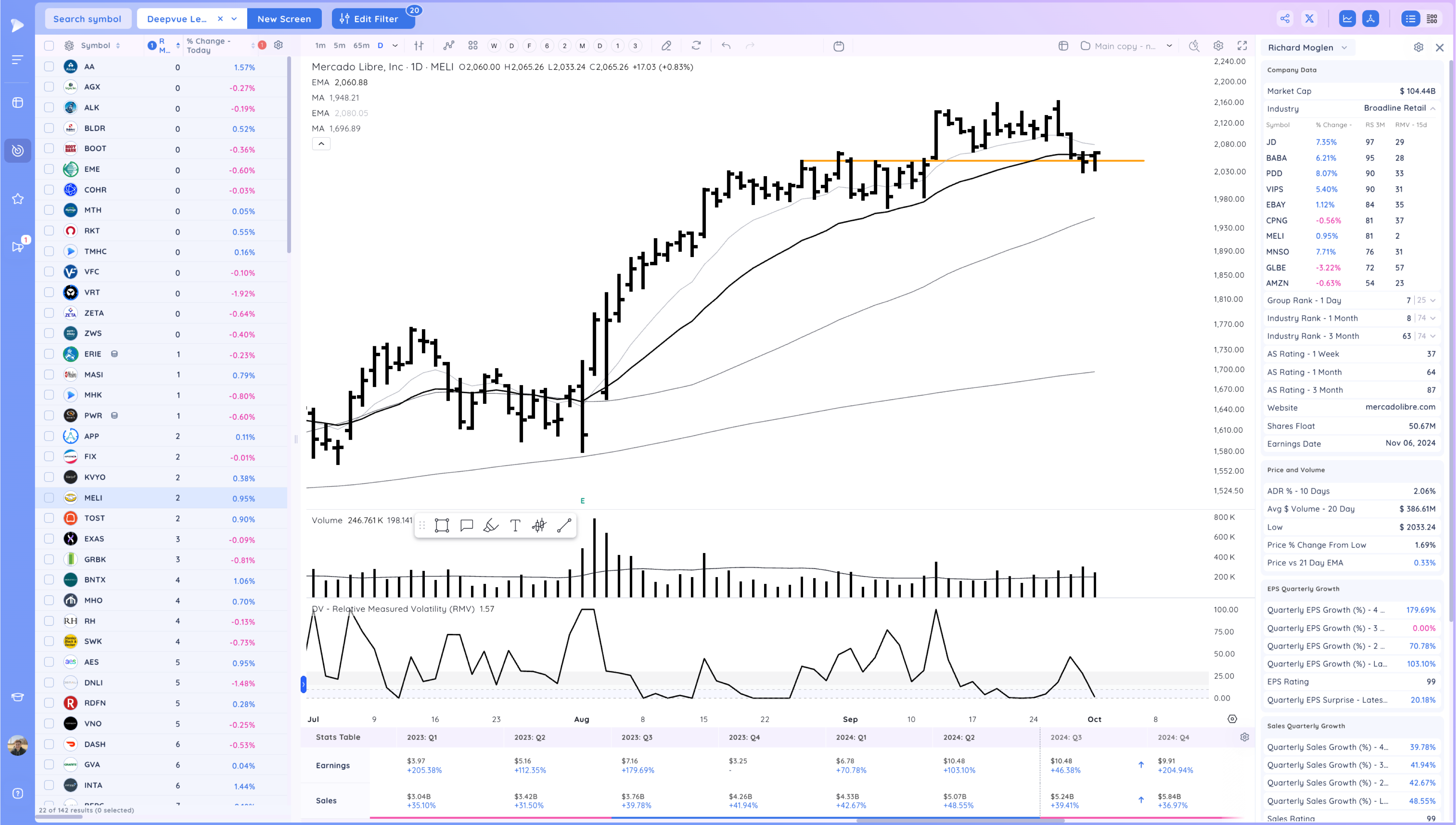 MELI 21ema pullback.