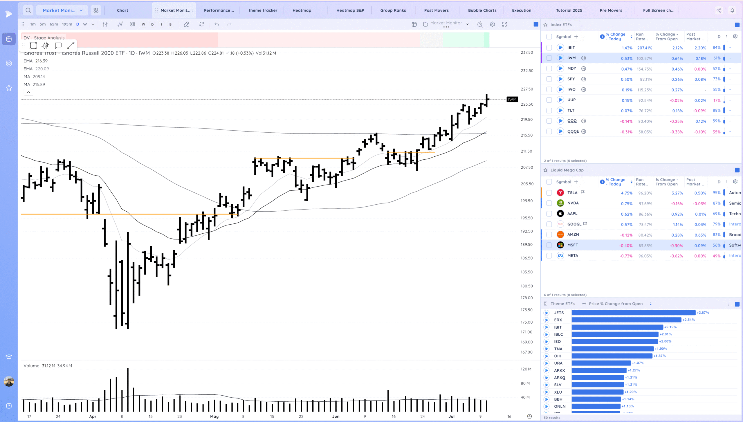IWM – some follow through up, trending. some fade off highs