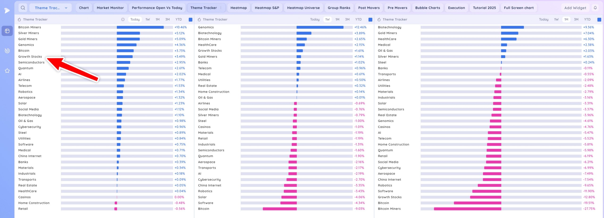 Growth stocks and semis bouncing.