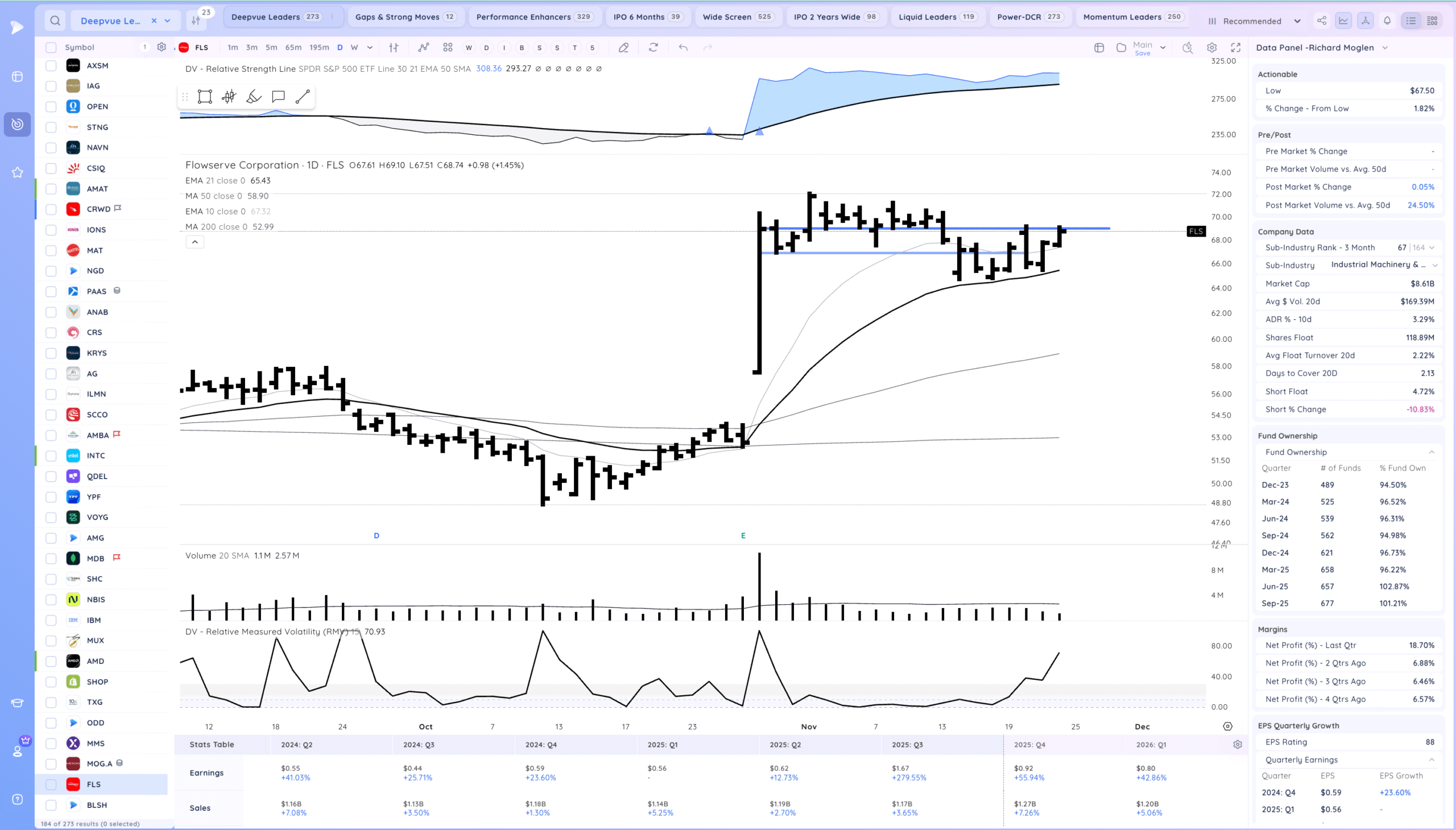Strong follow through and breakout from the base. Featured in Nov 18 report.
