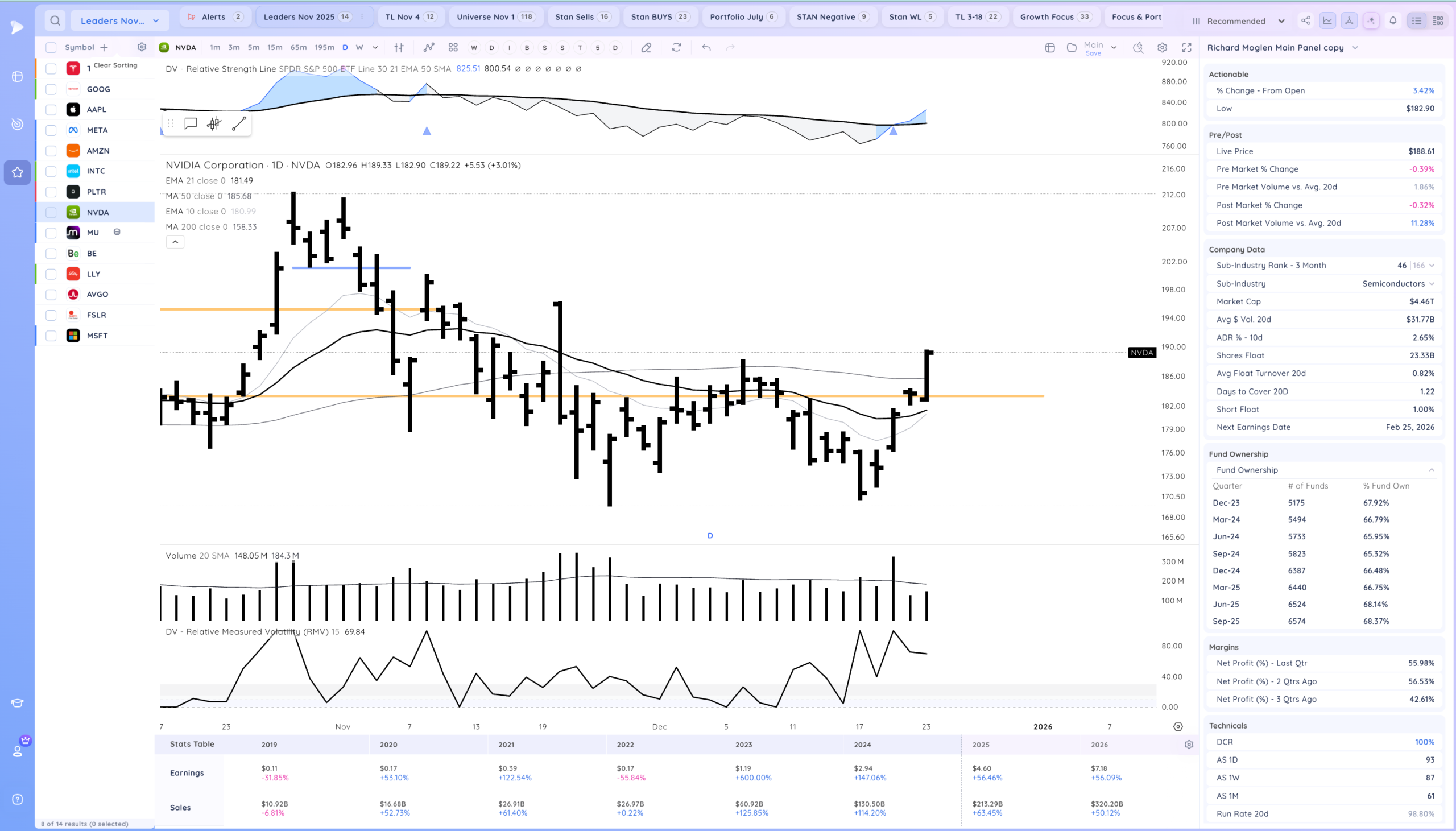 Good to see NVDA waking up. Some mega caps coiled or ready for reconfirmation.