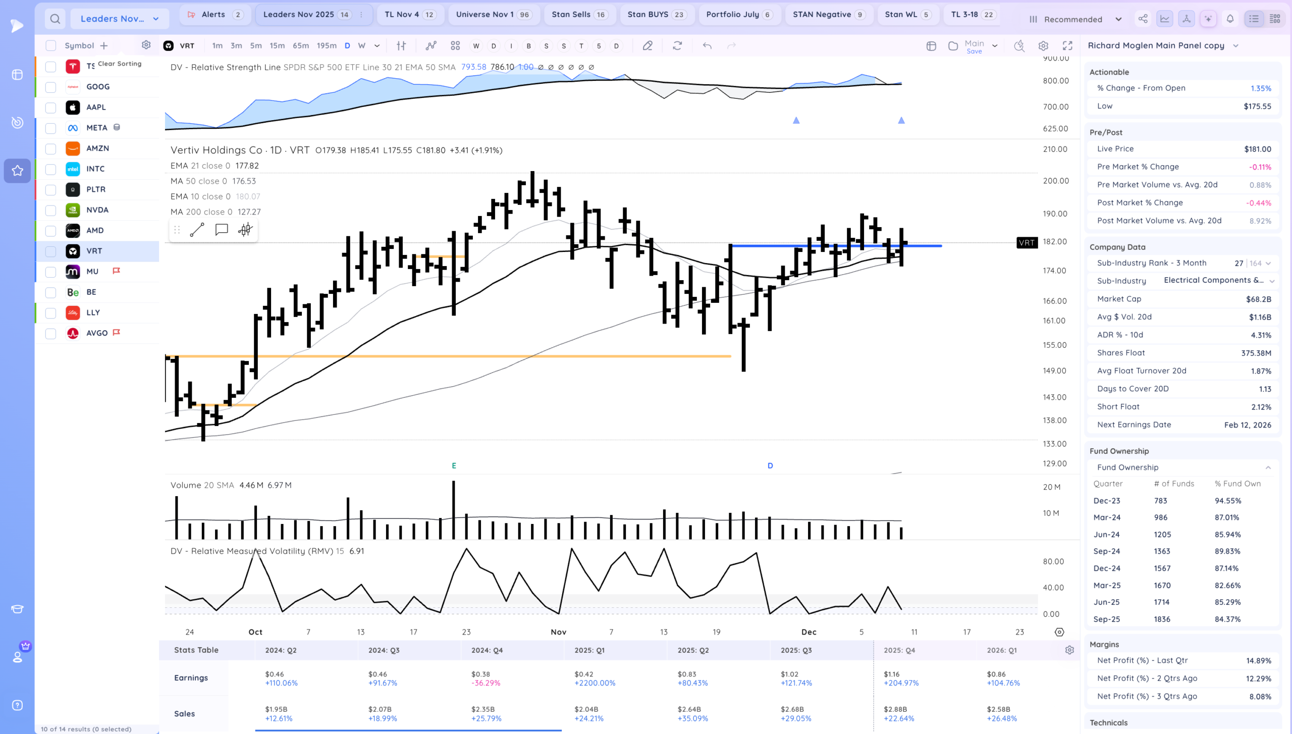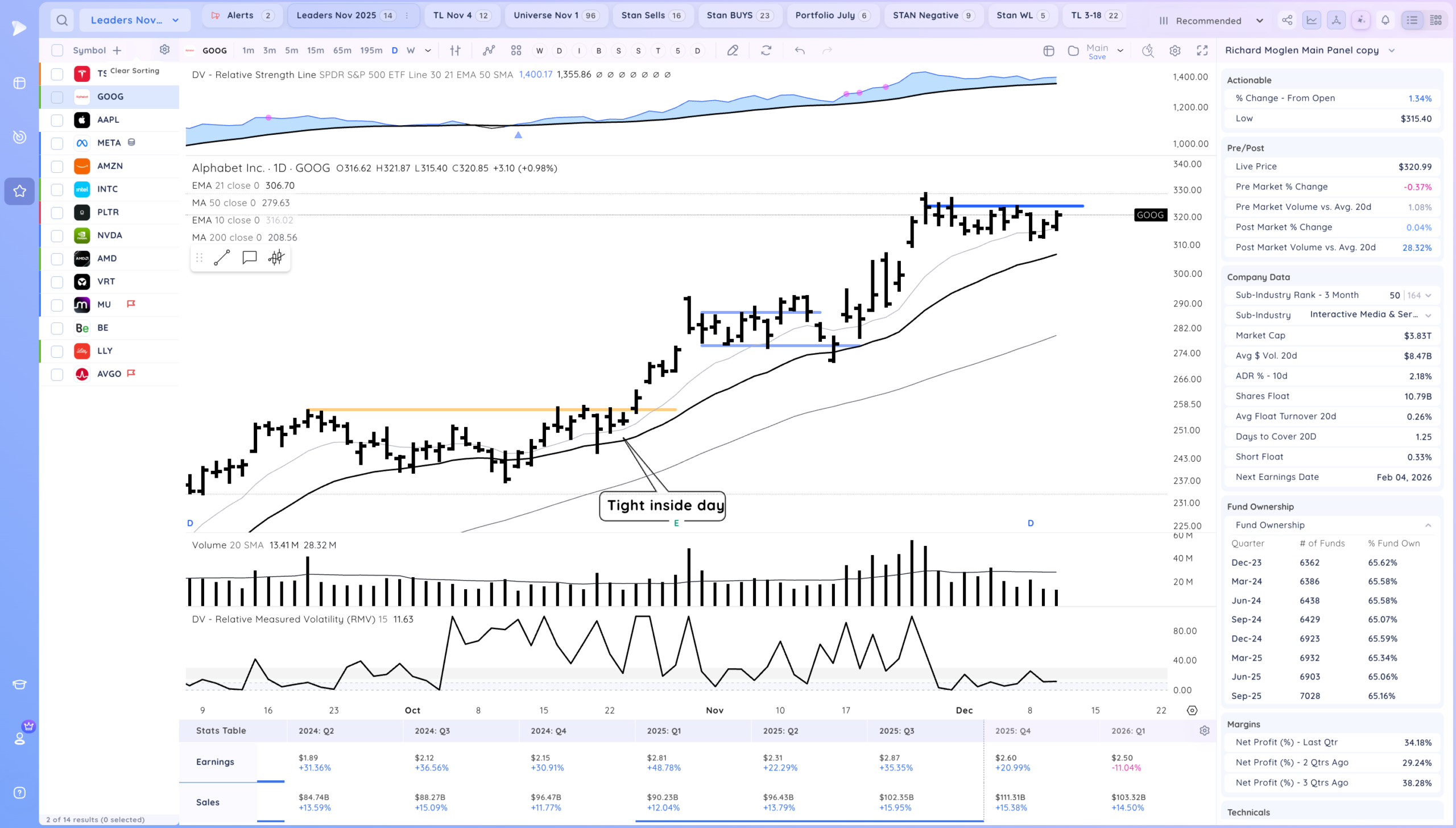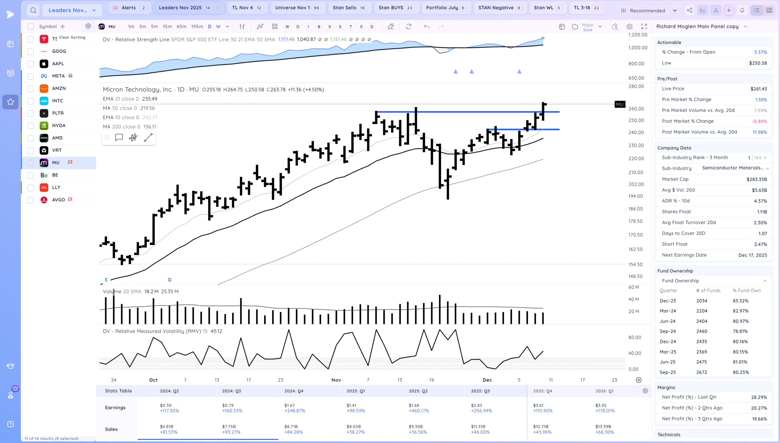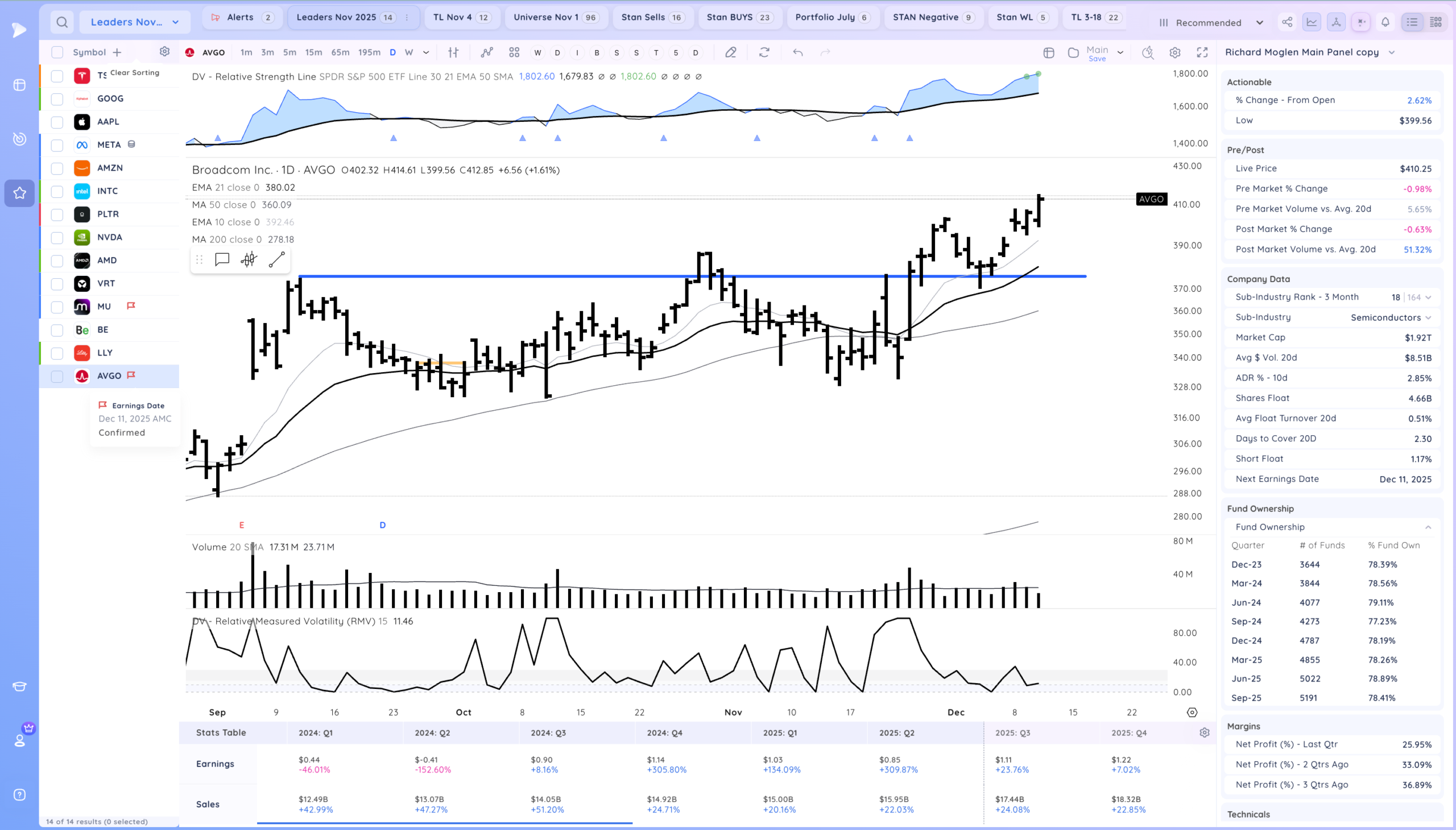 Good action after the Fed cuts rates. Now what will be key is if we get follow through, Many stocks are still coiled especially AI/Semi names. ORCL down after hours may impact the theme as well. Overall we are still in a developing uptrend.