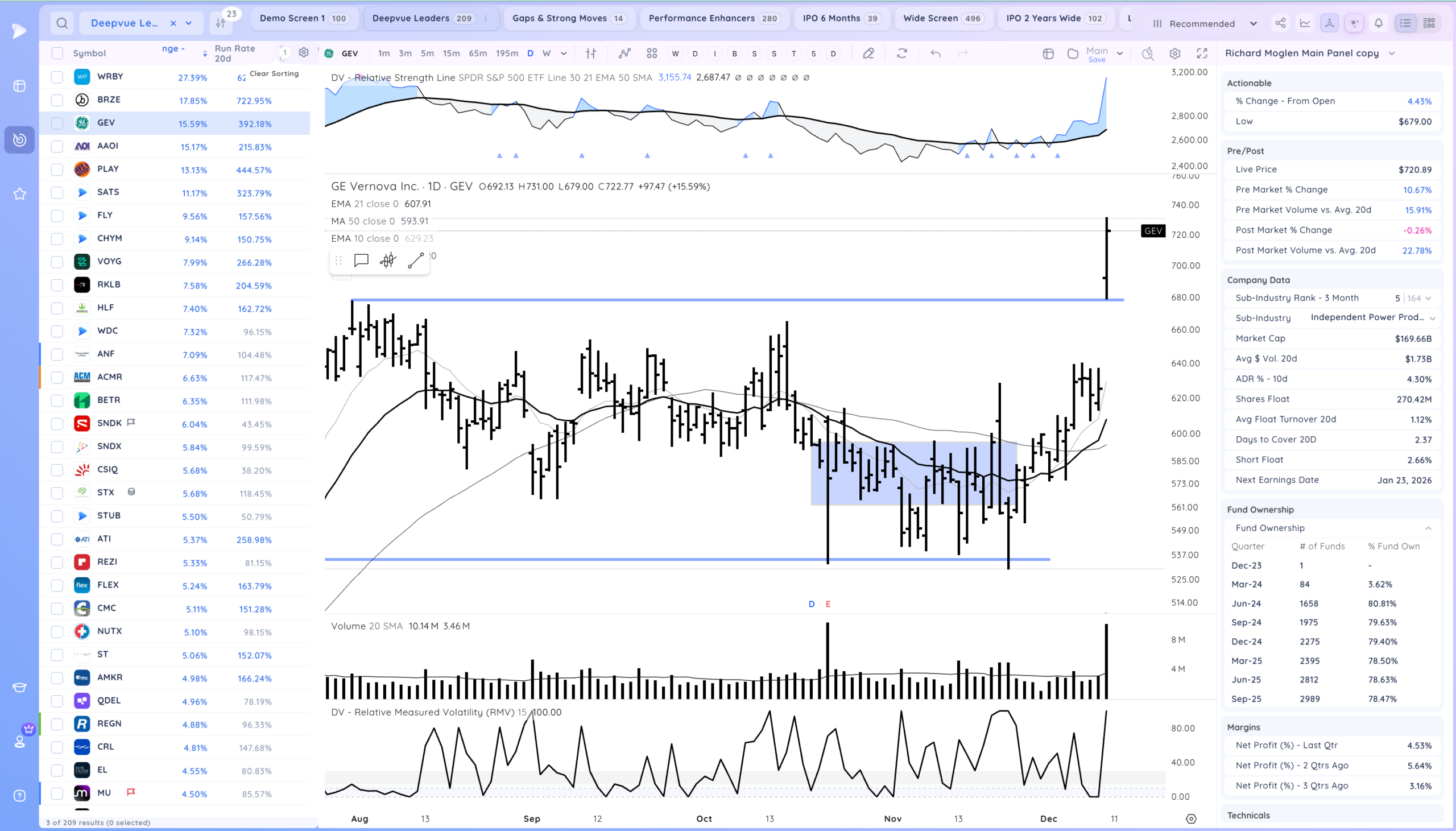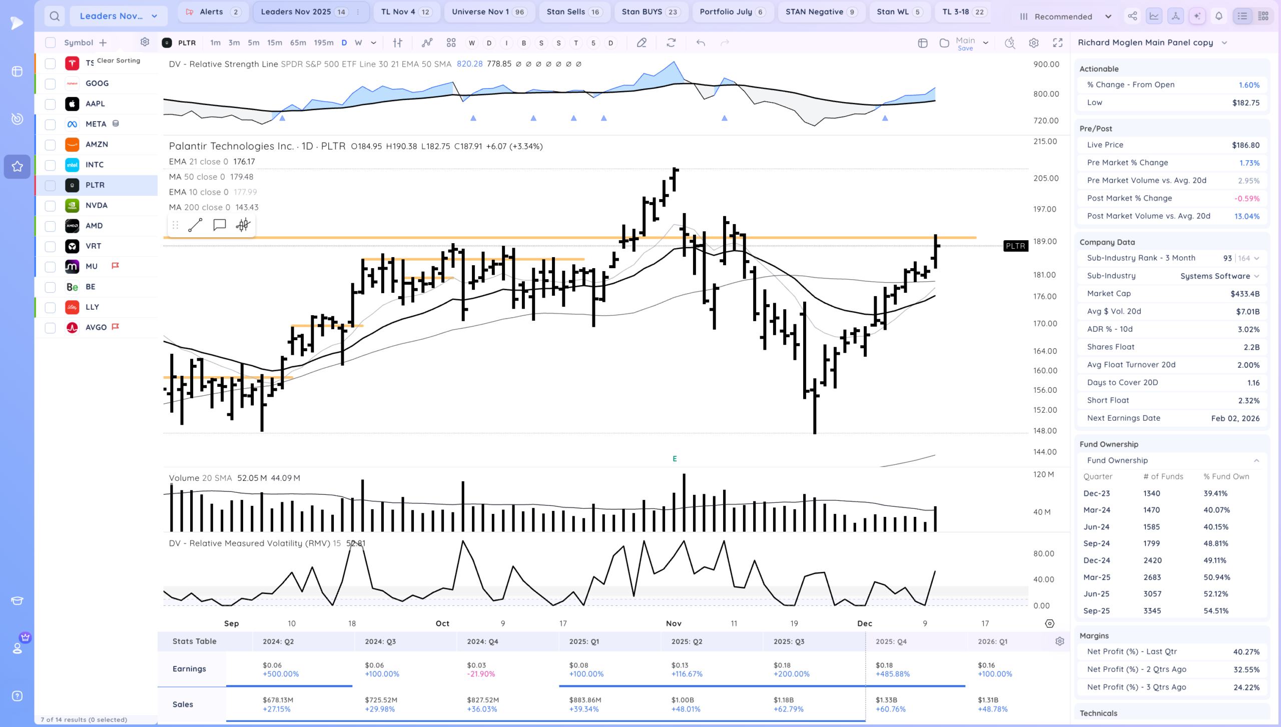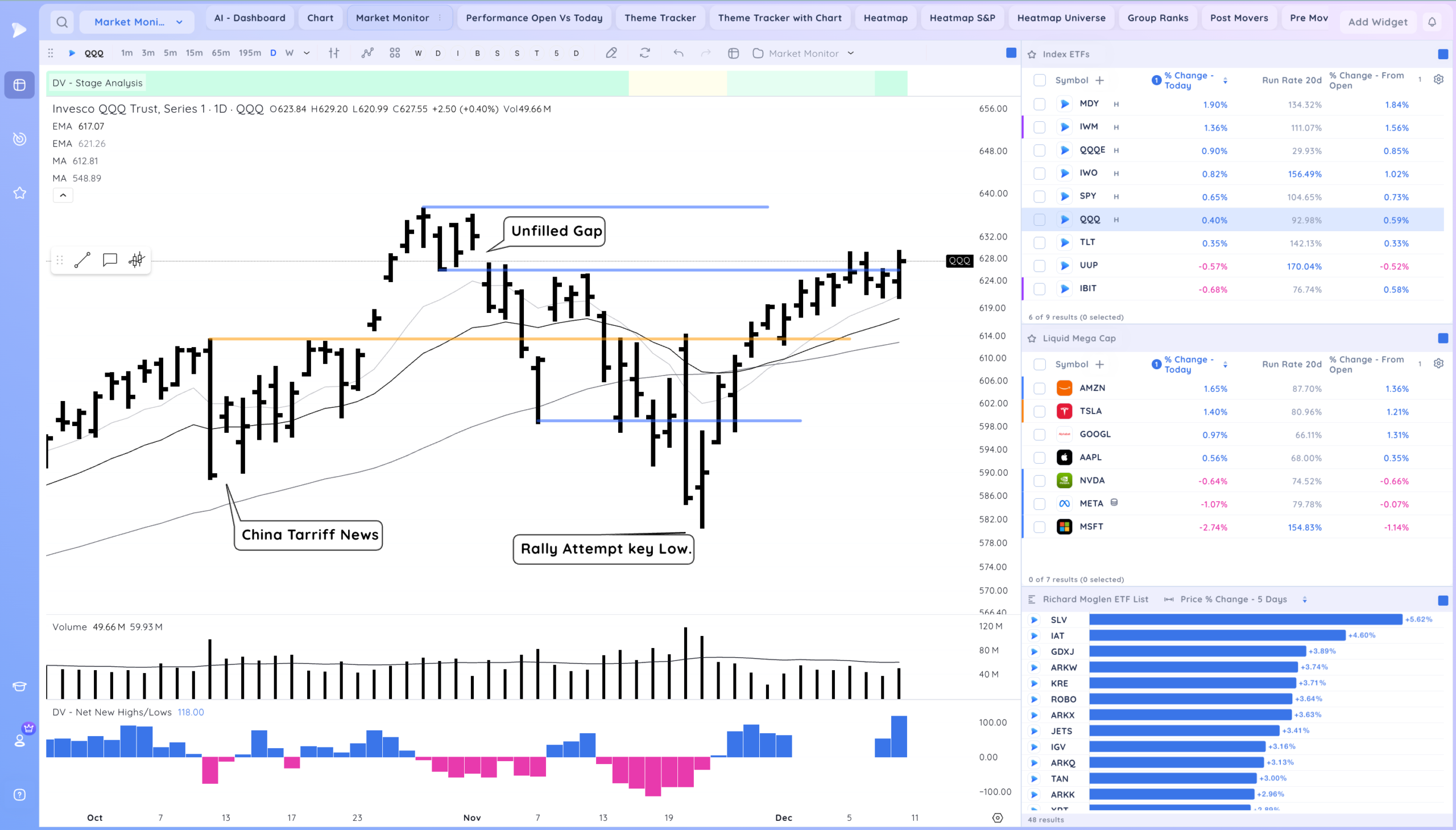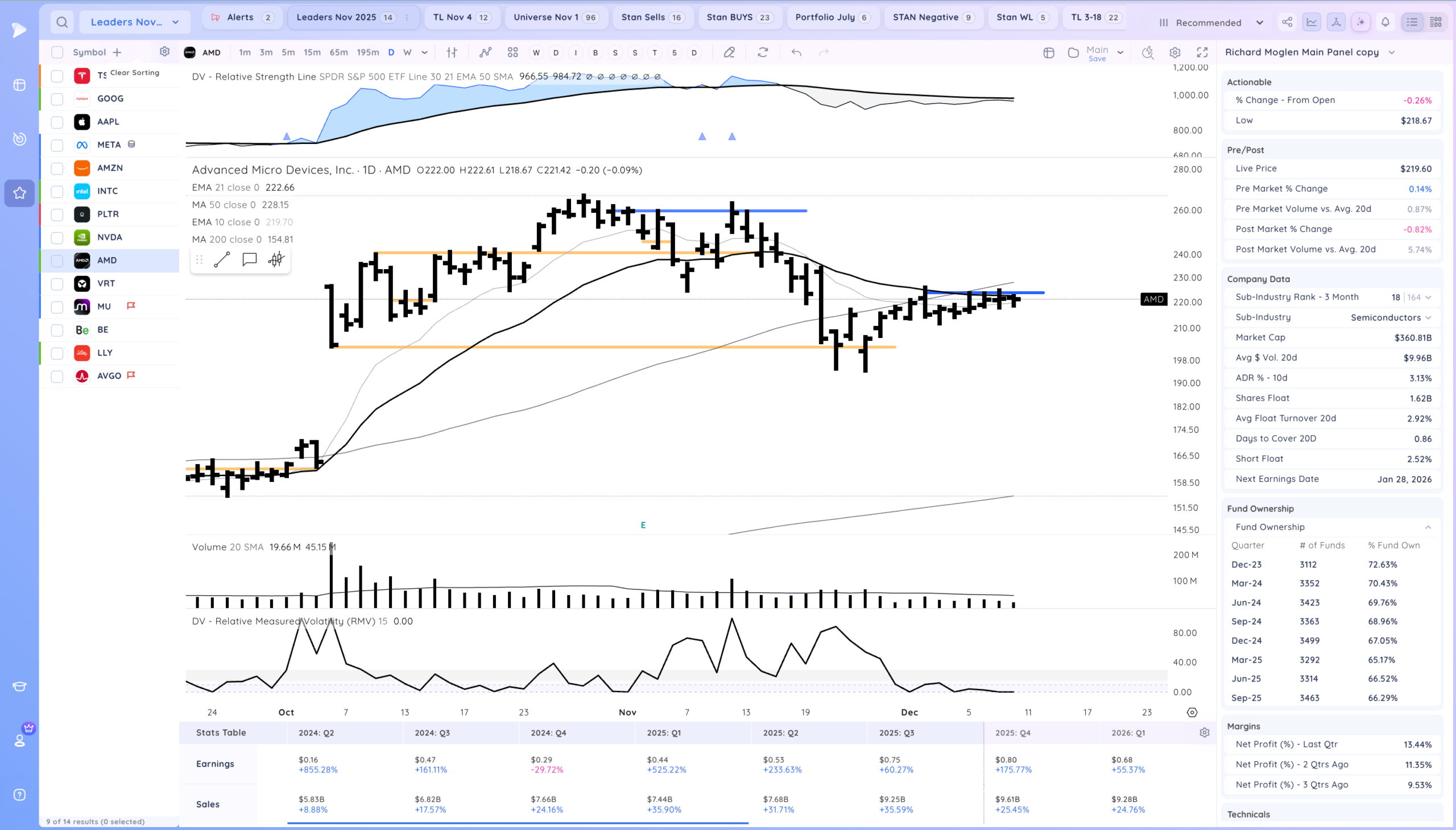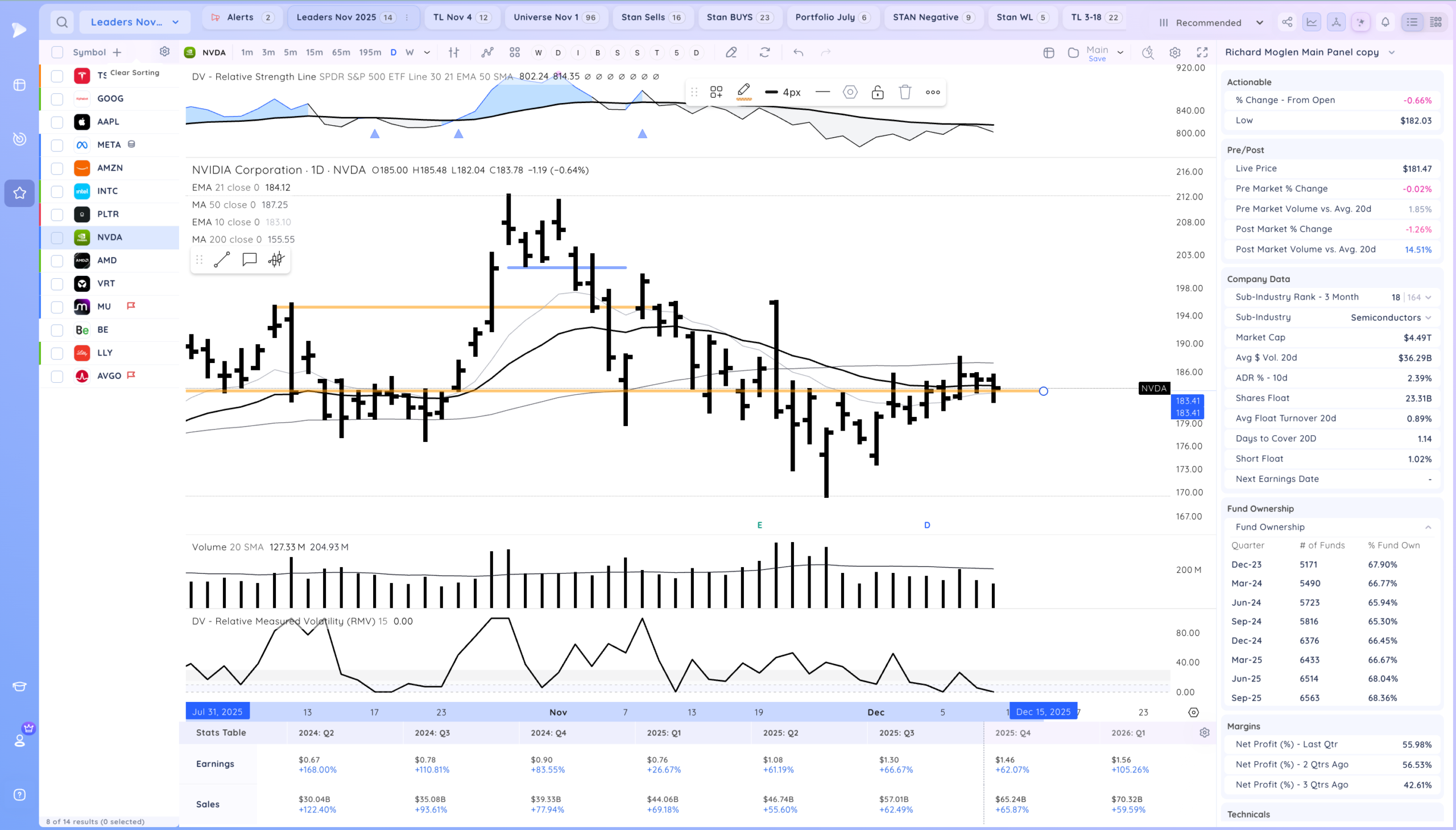 Good action after the Fed cuts rates. Now what will be key is if we get follow through, Many stocks are still coiled especially AI/Semi names. ORCL down after hours may impact the theme as well. Overall we are still in a developing uptrend.