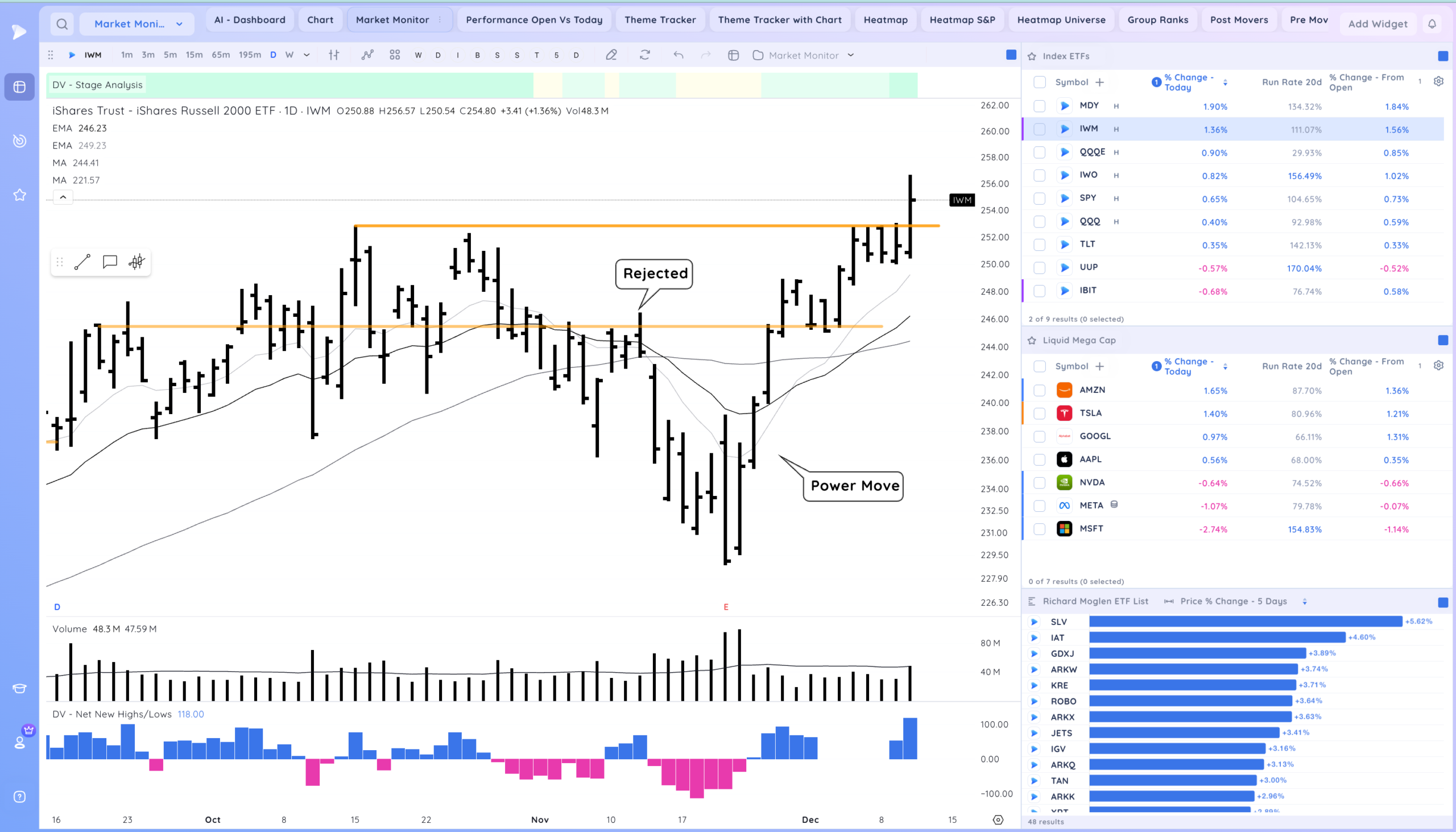 Retail Theme continues to act well. Noticing Oil and Gas as well as mining/materials names setting up. Names are still coiled.