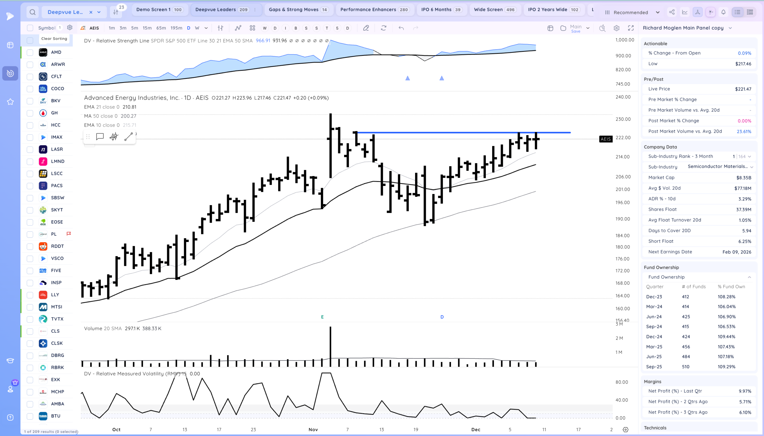 AEIS BKV HCC LMND LSCC EOSE PL TVTX CLSK BTU TXG FLNC PARR SEI GRAL NXT NVDA AMD VRT TSLA BE LLY