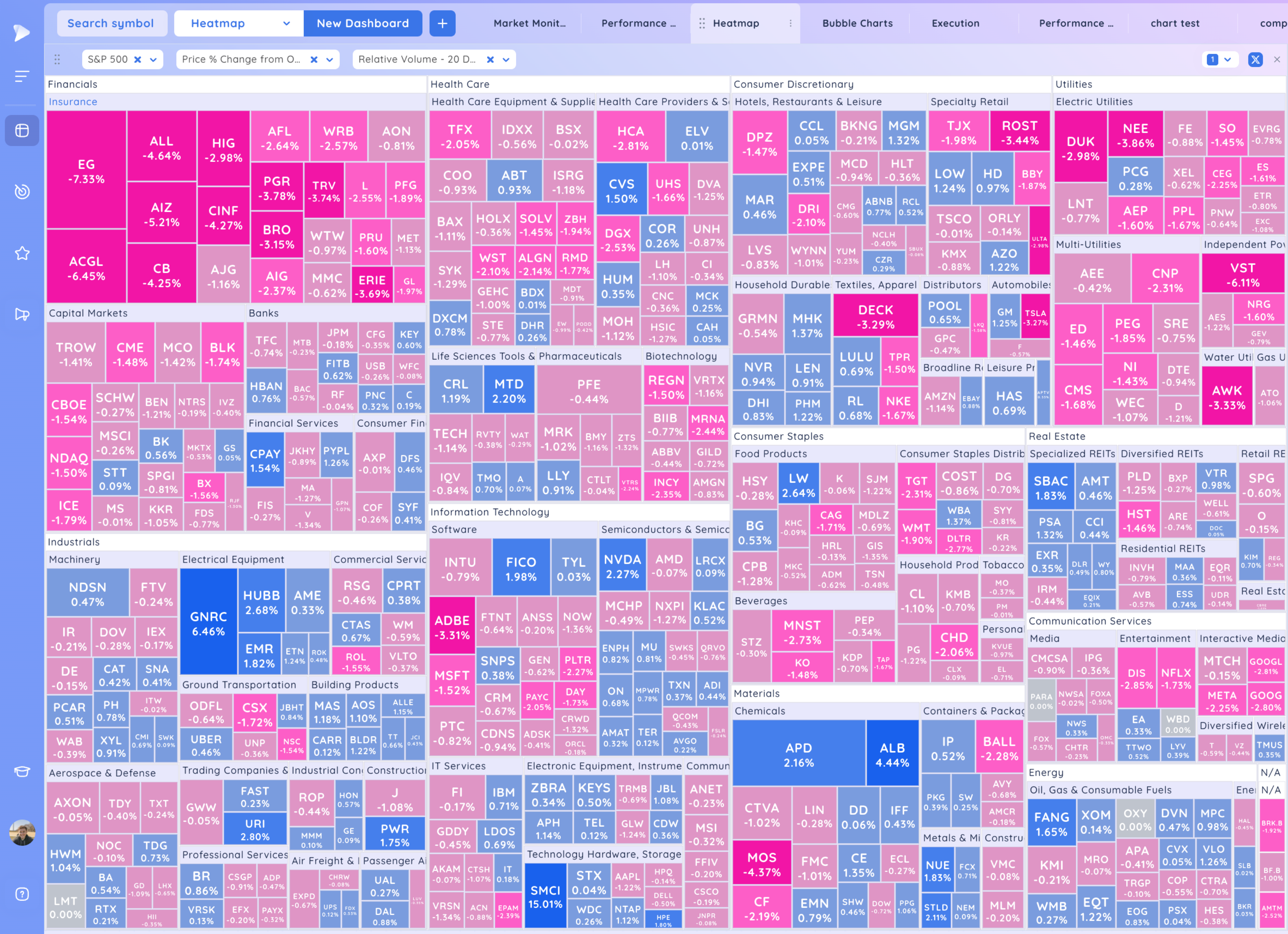 S&P 500 % Change from Open vs Relative Volume