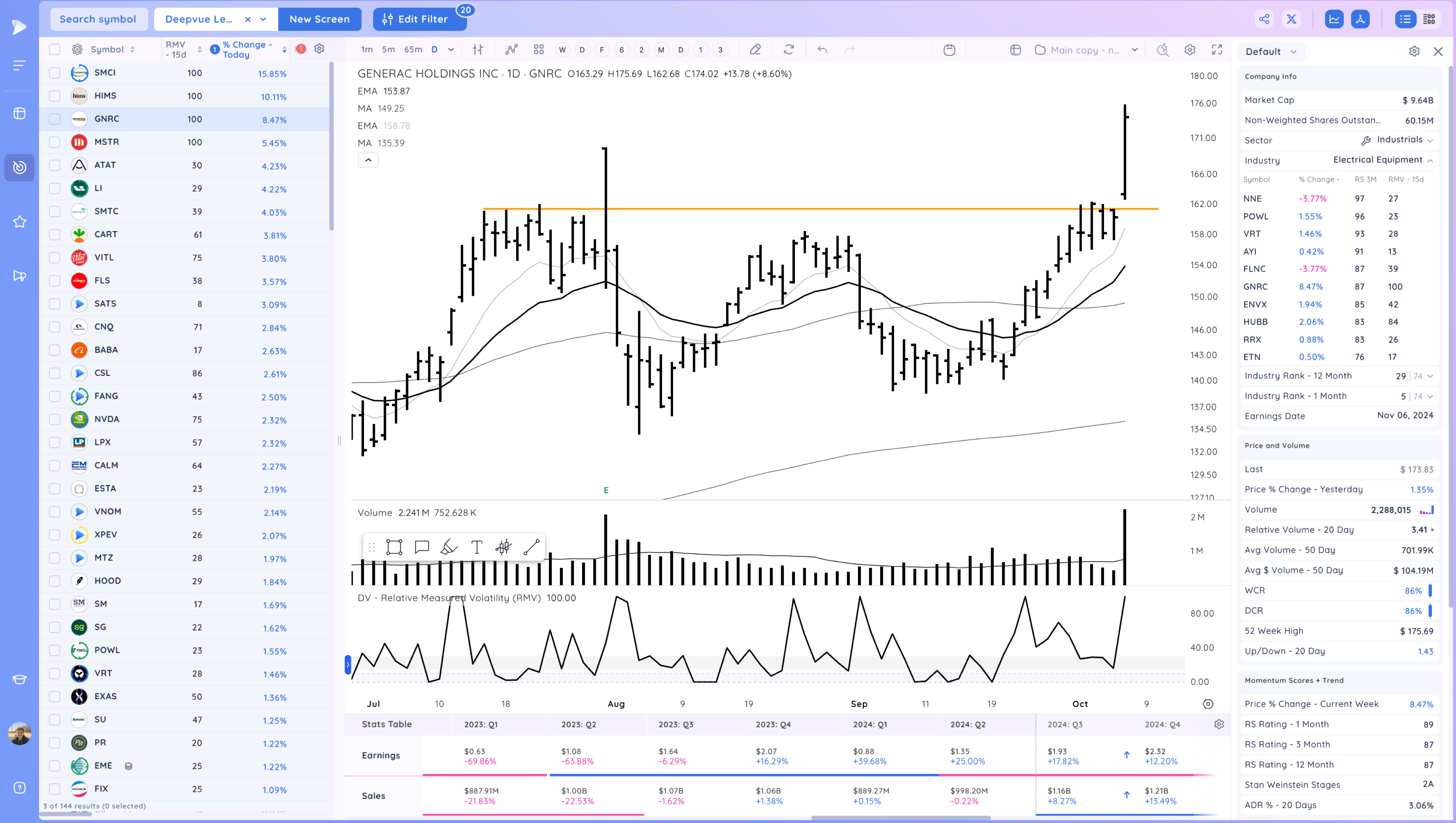 GNRC breakout on volume. may be linked to recent hurricane impacts