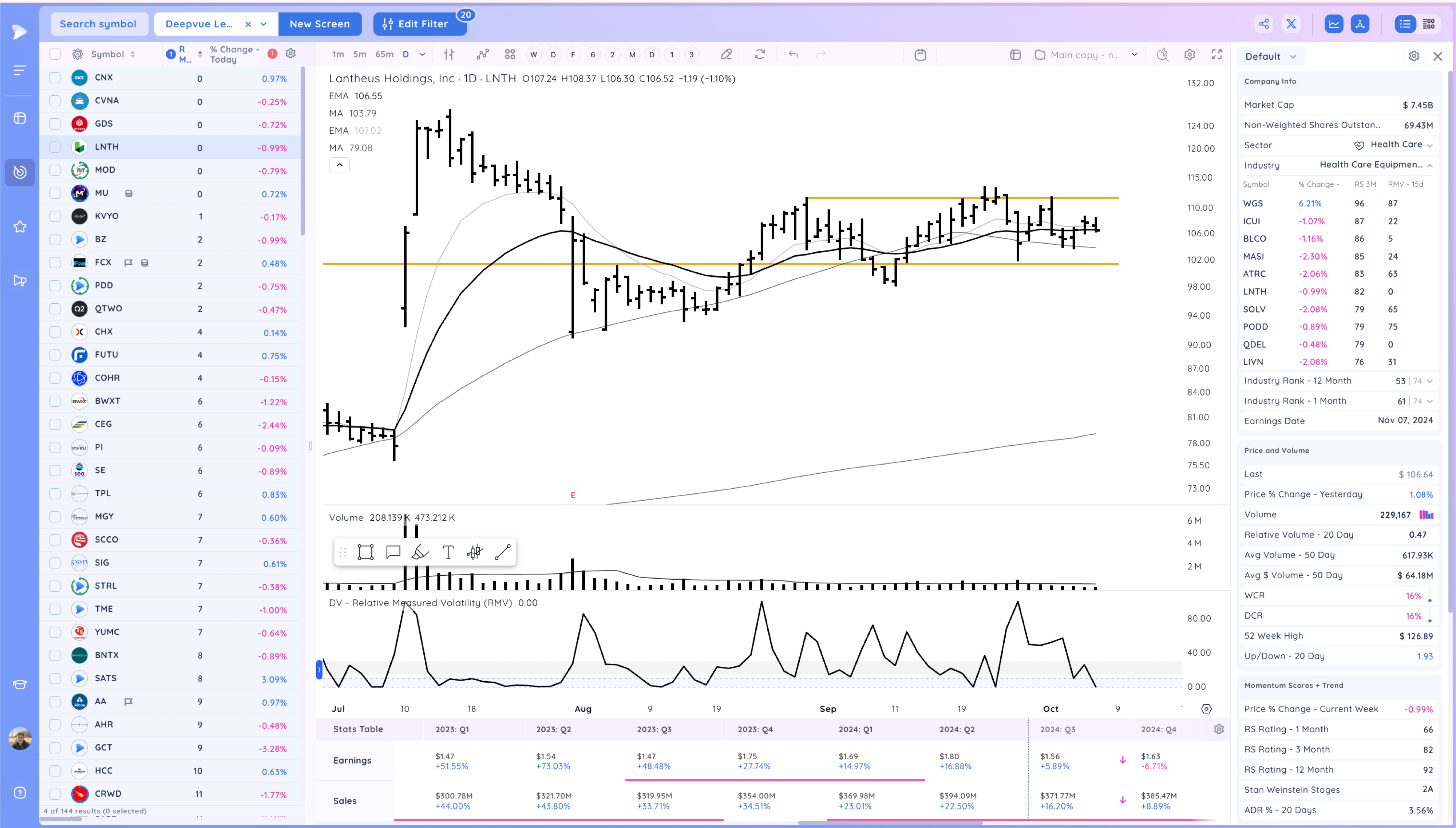 LNTH tight 2 days above the 21ema