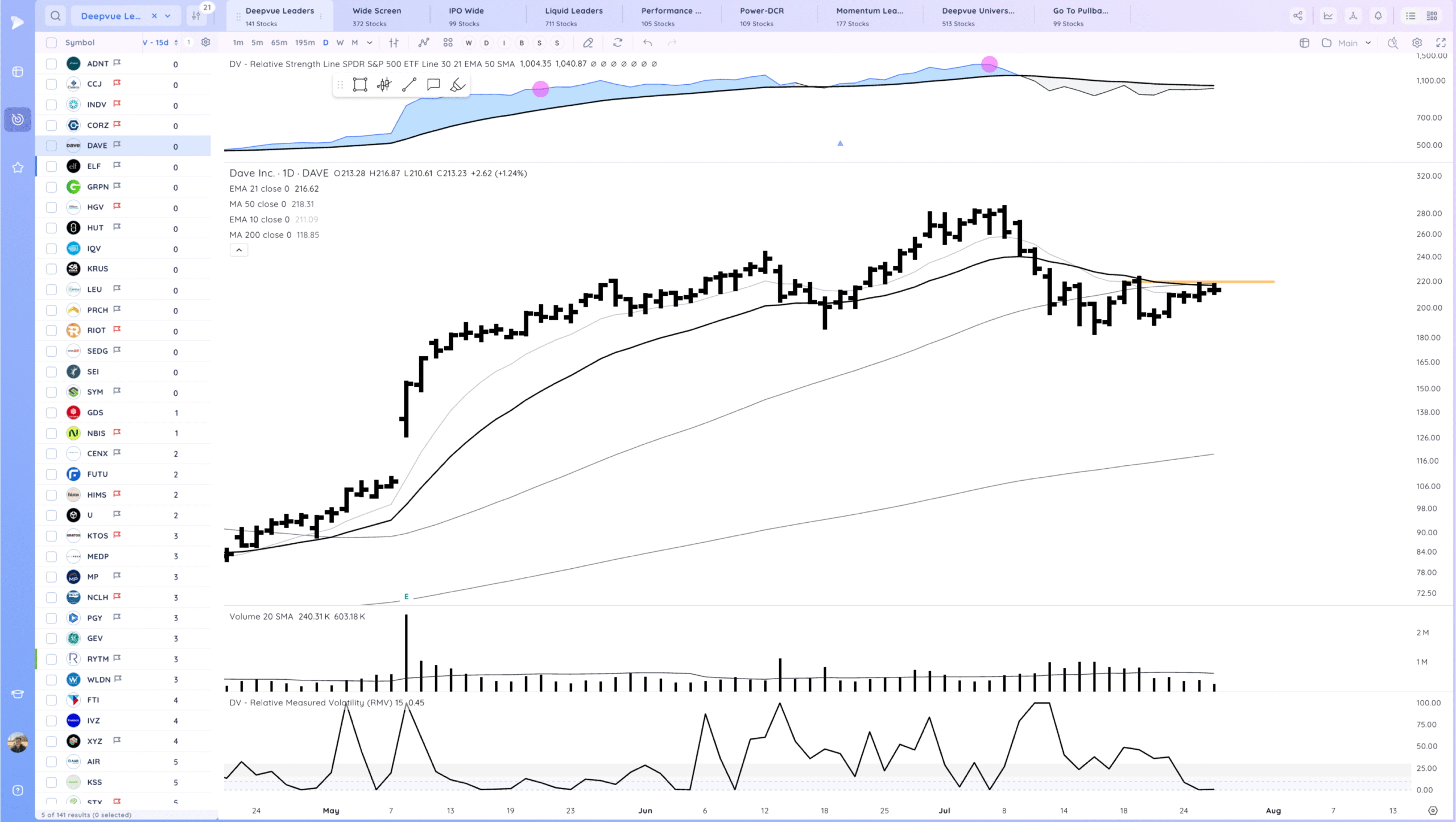 DAVE watching for a 21ema pop