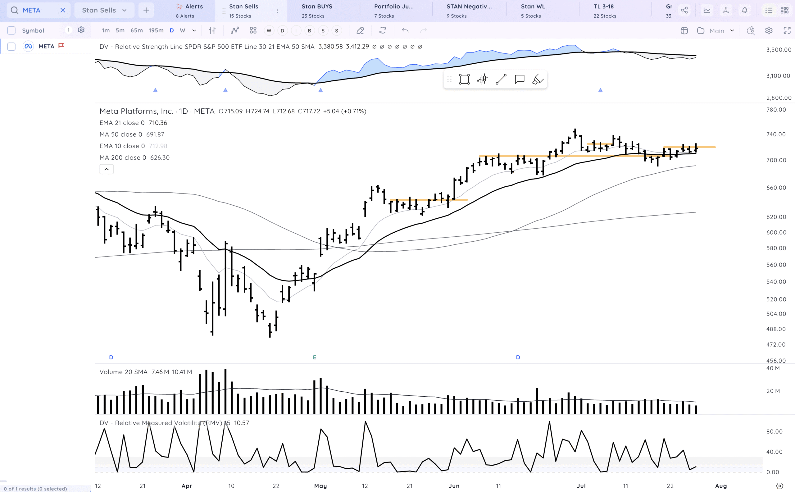 META some fade but in a range. watching for a push higher
