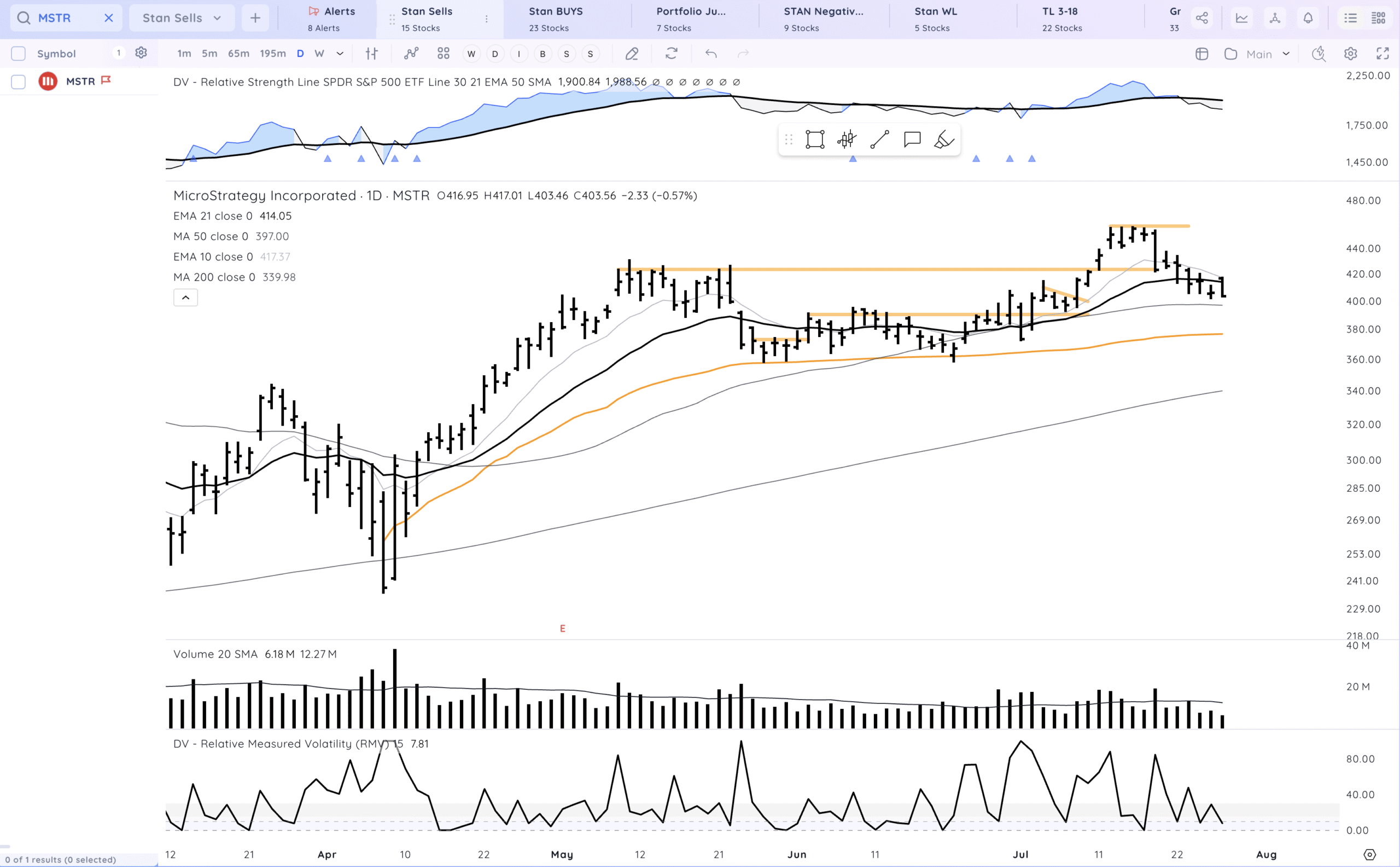 MSTR rejected at the declining 10ema