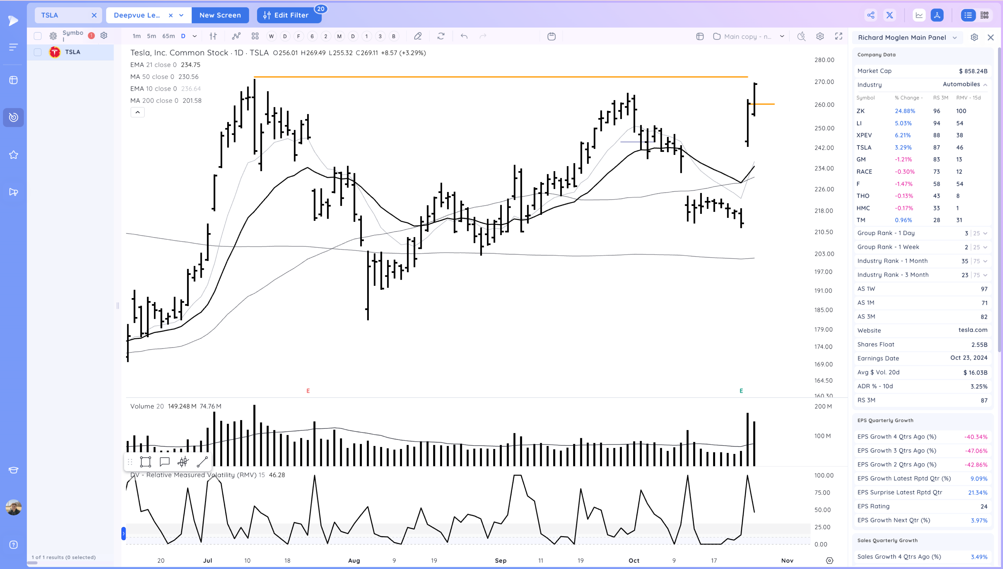 TSLA Weekly – Superior. EPS and Sales lines below, seem to be turning a corner. Annual estimates revised up