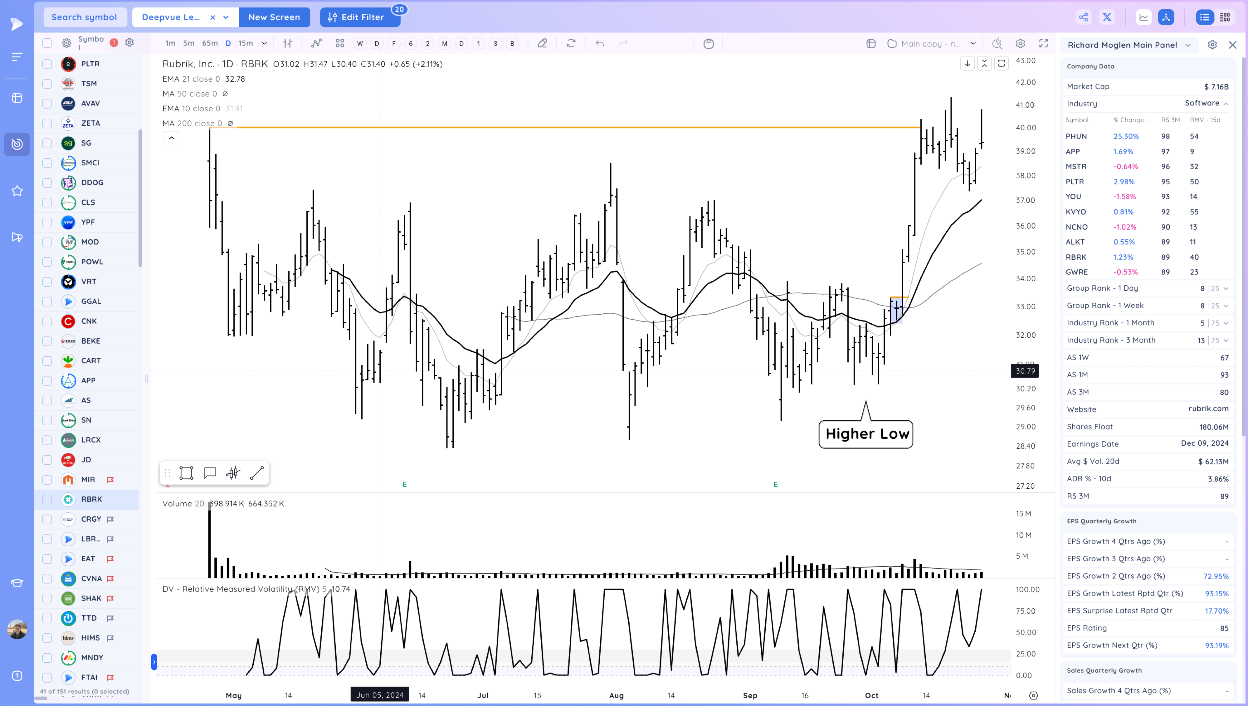 RBRK showing the value of finding early and tight areas. Whippy up hear near the pivot. one to stalk to see if it sets up another spot