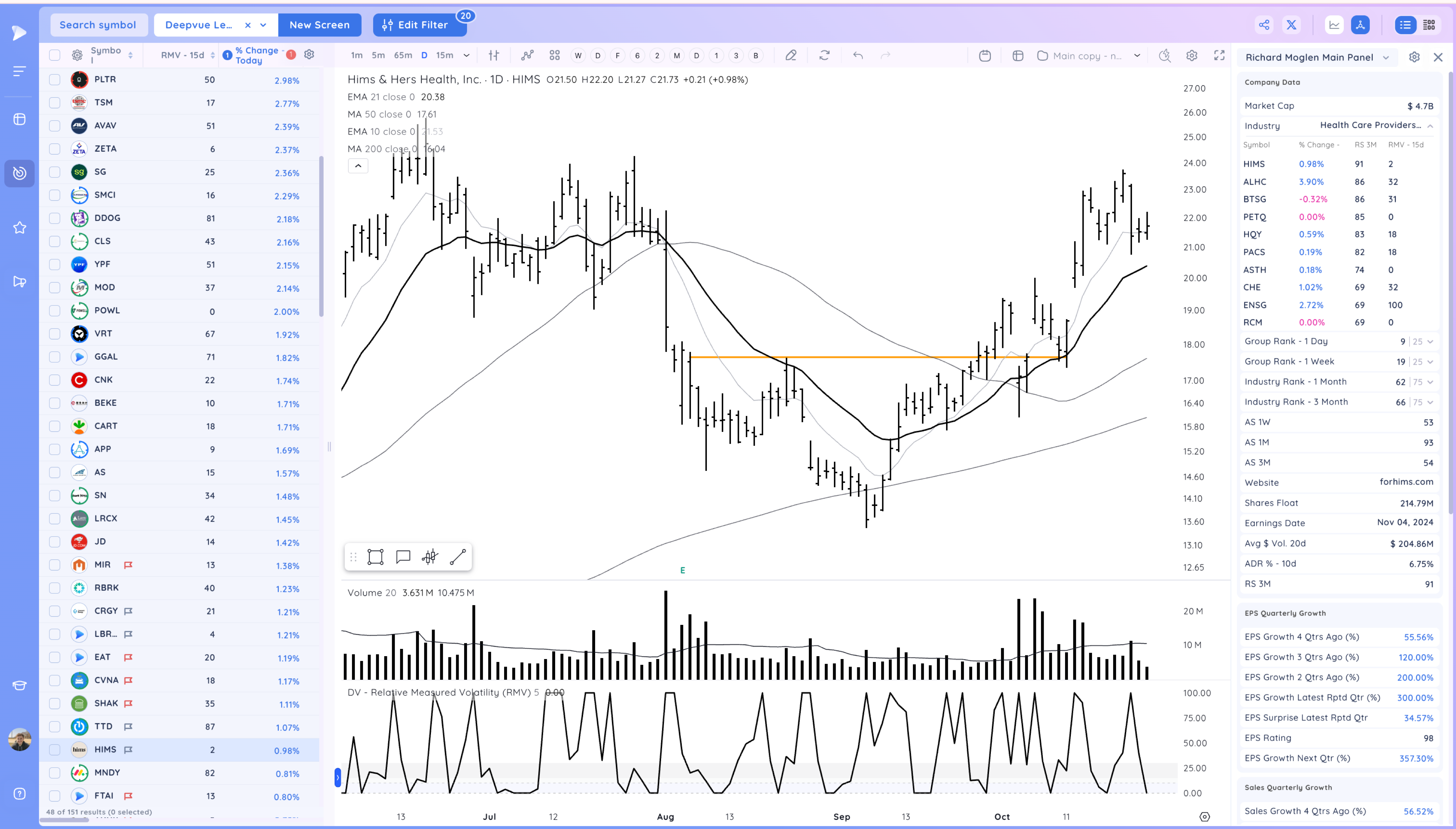 HIMS tight action on the 10ema. No follow through down so far on that bar, see if it pushes up or loses the 10ema