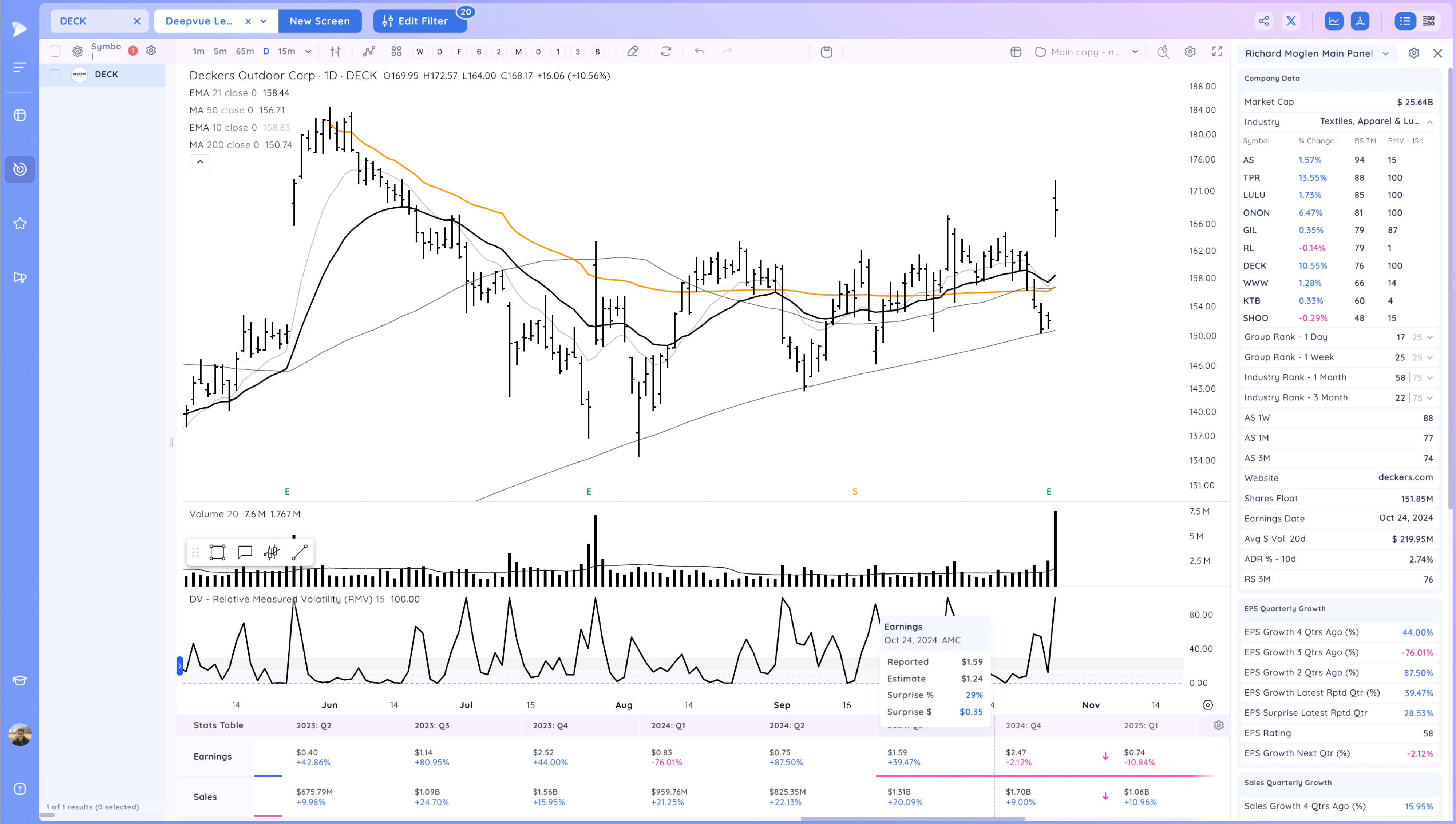 DECK big volume gap up from base lows